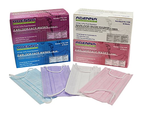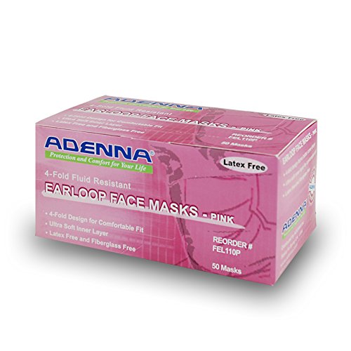 Adenna 3-ply/4-fold Earloop Face Mask, Pink (Box of 50)