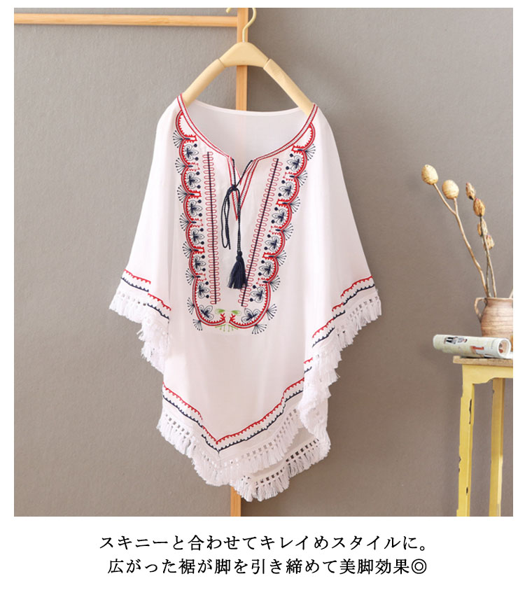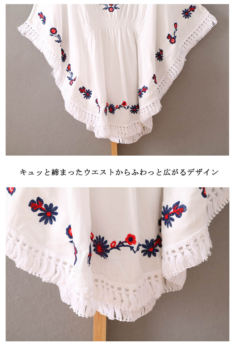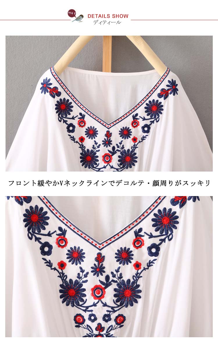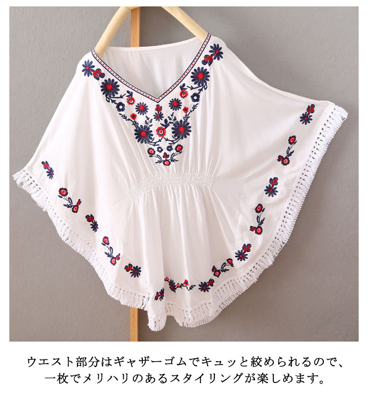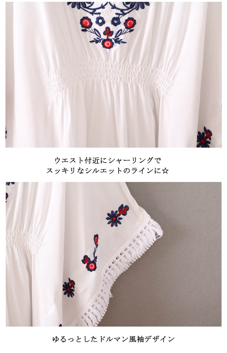 | 大人らしいフラワー刺繍が女性らしさを引き立てる◎V字にデザインされた襟ラインが顔周りをすっきりと魅せてくれます。ウエスト部分はギャザーゴムでキュッと絞められるので、一枚でメリハリのあるスタイリングが楽しめます。アンバランスような丈感のデザインでヒップラインをカバーしてくれるのも嬉しいポイント!スキニーと合わせてキレイめスタイルに。広がった裾が脚を引き締めて美脚効果◎ | |