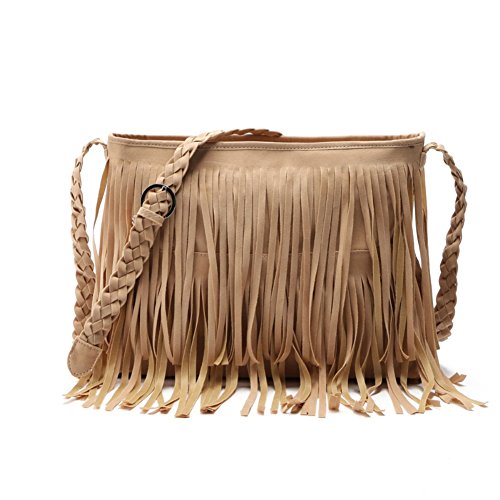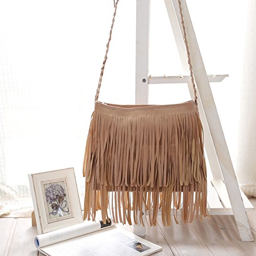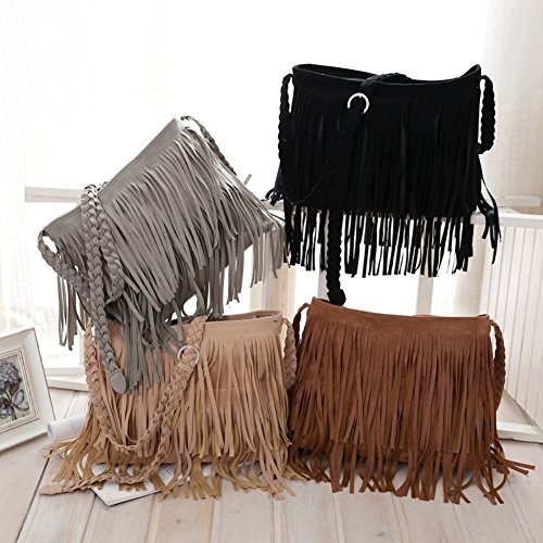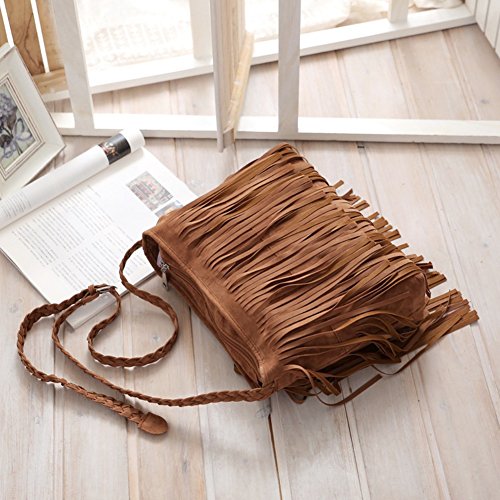 BEKILOLE Hippie Suede Fringe Tassel Messenger Bag Women Hobo Shoulder Bags Crossbody Handbag 4Colors