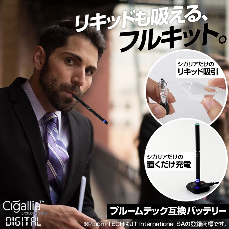 あのシガリアデジタルが、リキッドも吸えるリキッドカートリッジ、置くだけ充電できる充電スタンドとセットになって登場。【特徴】●充電が切れたら困る外出時の予備バッテリーとして●バッテリー充電時の予備バッテリーとして●繰り返し使用して充電が切れやすくなったバッテリーの交換用として●たばこカプセル交換時期のお知らせ機能付き●リキッドも吸える●スタンドに置くだけで充電できる。もちろんカートリッジもつけたまま。デジキン