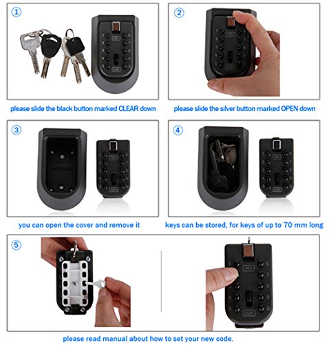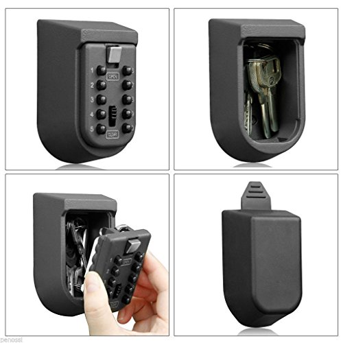 -. Title : Lennov Indoor & Outdoor Wall Mount Key Lock Box with 10-Digit Push-Button Combination is Weather Resistant and Holds up to 5 Keys (Black)