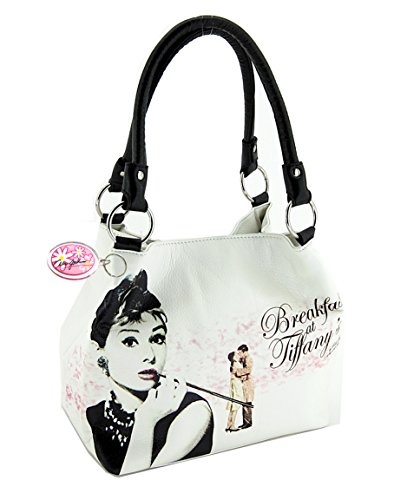 Audrey Hepburn White Medium Handbag, Licensed, Ship from U.S. Plus Key Chain