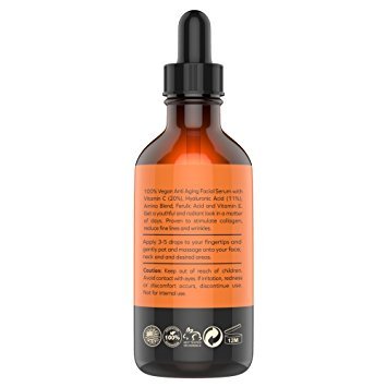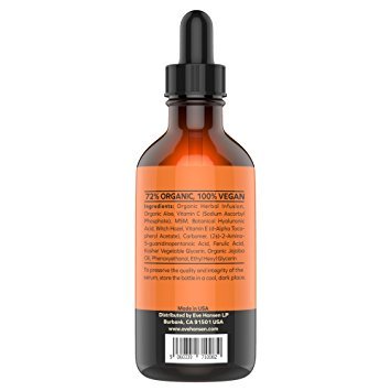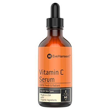 Vitamin C Skin Serum and acne scar treatment, anti-aging skin-care regimen. This serum moisturizer with vitamin c, (l-ascorbic acid), is key to boost collagen, a protein that aids in the growth of cells & blood vessels & gives skin its firmness, strength. When applying dry skin treatment vitamin c e serum to the skin directly, the antioxidants neutralize free radicals that age you. When a free radical steals an electron from one of the proteins in a strand of collagen, it creates a tiny break in the strand. More breaks = more wrinkles. Since vitamin C is an electron donor, it helps reverse and prevent the signs of aging. Use it to keep skin firm and youthful and protect yourself from UV rays. Eve Hansen's all natural Vitamin C Serum contains 20% Vitamin C & 11% Hyal Acid along with other anti-aging ingredients to make a unique acne serum which is rich in antioxidants that are easily absorbed by skin, offering protection from harmful sun rays. Works well on all skin types including sensitive, dry and oily skin. Our Vegan Vitamin C Serum for your face can be used daily in the morning, or as a night serum to combat common signs of aging and helps reduces wrinkles, fine lines and dark spots for bright complexion & younger-looking skin. A full skincare routine is a necessity. To begin, use a cleanser & toner to effectively wash & remove dirt, oils, and toxins from your skin. After cleansing & toning, apply facial serums such as liquid vitamin c serum, hyaluronic acid or retinol. After serums, apply your favorite creams, moisturizers, or lotions. Using a vitamin c lotion will aid in enhanced collagen production. The best vitamin c serum acts as a facial brightening serum, tightening serum, acne serum, and its ability to reduce wrinkles, fine lines, dark spots, sun spots, shrink pores, sunburn irritation, age spots & balance skin tone care. NATURAL & ORGANIC Vitamin C serum shields UV rays and repairs sun damage. Love it or its on us!Feature