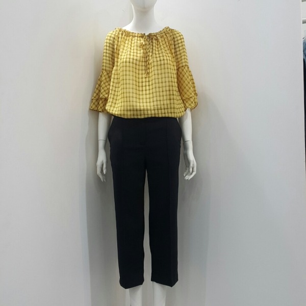 전체체크패턴에 목부분 셔링이 포인트되는 블라우스 입니다가벼운 소재감과 화사한 컬러감이 돋보이는 블라우스입니다