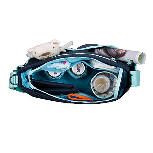 The Marv Shoulder Bag from LASSIG is a stylish diaper bag for the smaller budget. This comfortable entry model features a water-repellent changing mat and an insulated, removable bottle holder. The bag also includes a water-repellent wet pocket, a stroller attachment and an integrated cell phone compartment as well as a key finder and other accessories. The front and side exterior compartments offer extra storage space and can easily fit items such as water bottles. Available in a variety of colors and classic designs.Feature