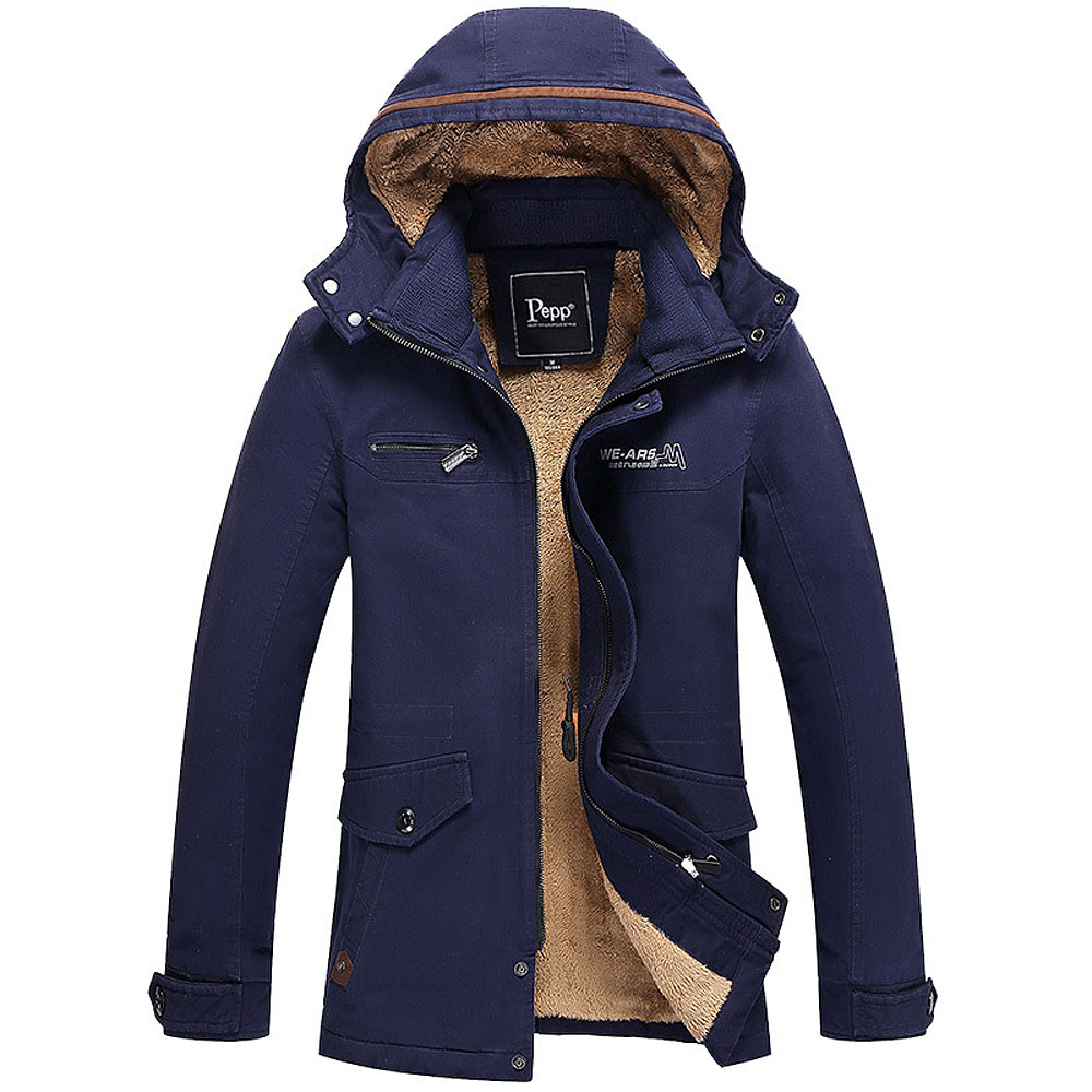 Men\ s Fur Lined Jacket Thick Long Warm Winter Fit Hooded Coat Overcoat men winter jackets mens cotton coats outwear Asia size