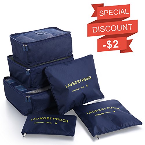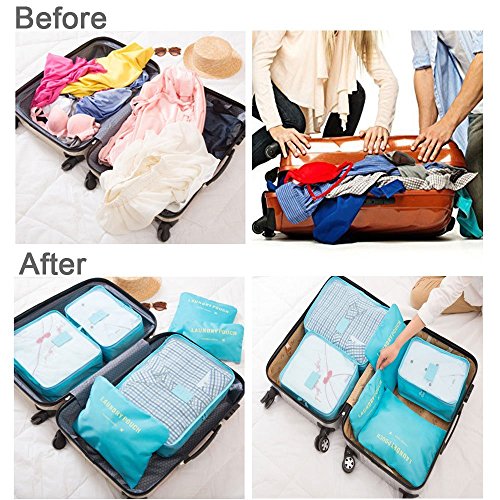 ✔EASY-TO-USE:VARIOUS SIZES of cubes help you to divide your things wisely. For instance, the laundry Bag Included to Help Separate your Dirty Clothes At The End of The Trip,and it is perfect as your private bag, you can put your underwear, socks in it.If you're a girl, you can use it as a cosmetic bag too! Large interior volume holds all your travel clothing, shoes, makeup, shaving accessories,chargers,cords,headphones and ect.It's up to your wishes! The cubes does make organization much easier.