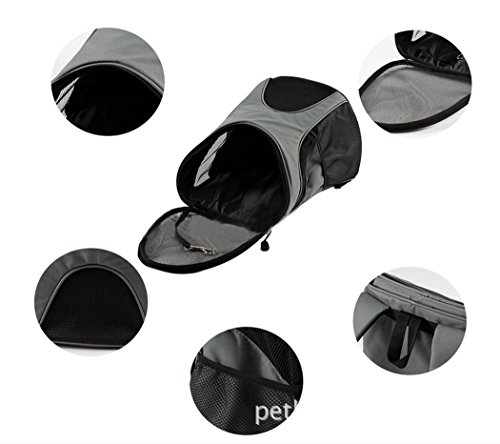 -. Feature : Special inside hook design connects to pet's collar in order to protect your pet's safe / Mesh windows are ventilated and visible, making your pet breathe freely and relax. Zipper design is easier for pet to get in and out / Mesh side pockets help to store leash, whistle, water, snacks, treats and other necessities / Adjustable padded straps help to reduce the burden. Extendable strap with buckle keeps the backpack stable / Perfect carry bag for walking, travel, hiking or other daily use