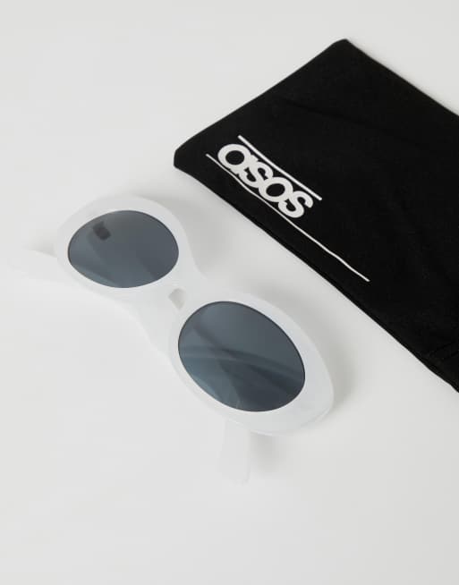 ASOS DESIGN oval sunglasses in frosted white with smoke lens