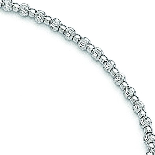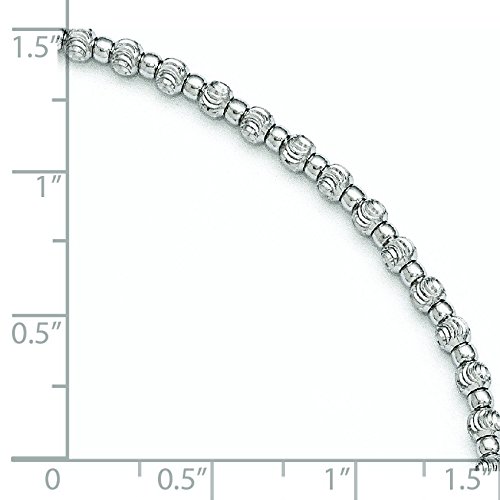 Sterling Silver Rhodium Diamond-cut Beaded Anklet With 1inch Ext. - 9 Inch - 4.3 Grams in Sterling Silver - JewelryWeb Style: QTA301437SS - FREE gift-ready jewelry boxFeature