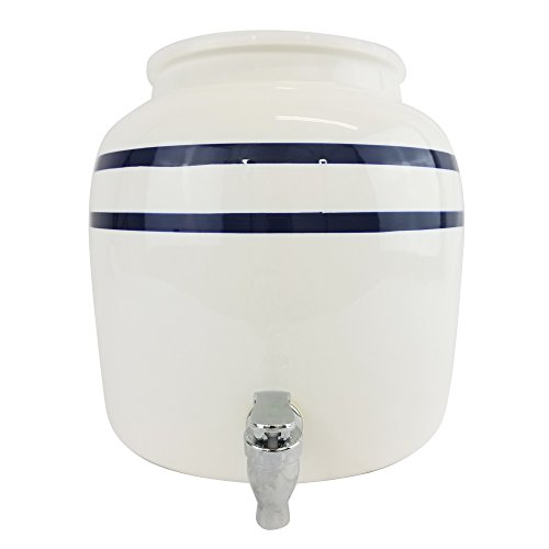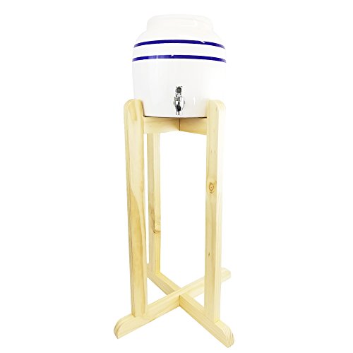 Porcelain Water Dispenser with Blue Stripes and Natural Floor Stand