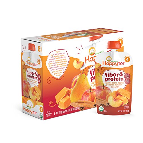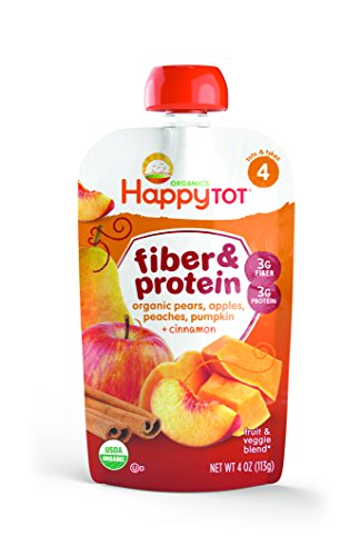 Happy Tot Organic Fiber & Protein, Pears, Apples, Peaches, Pumpkin + Cinnamon, 4 Ounce (Pack of 16)