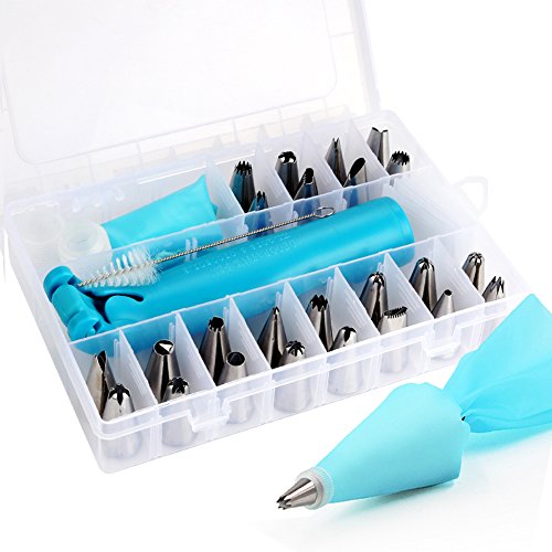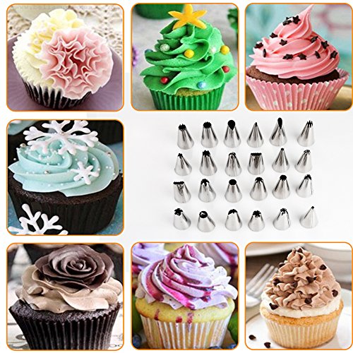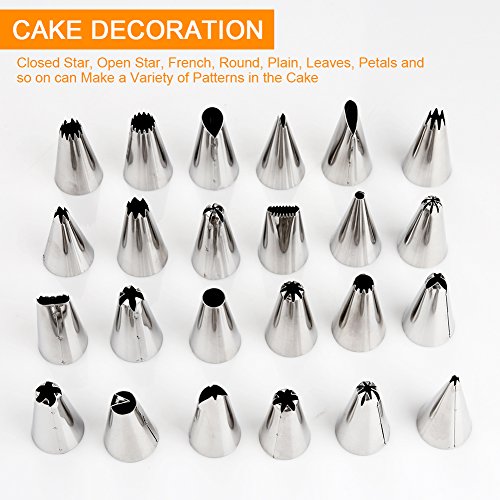 - Cake Decorating Tips - Closed Star, Open Star, French, Round, Plain, Leaf, Petal, etc. Durable carrying case keep cake decorating kits protected in separate chambers and choose quickly which one you need.