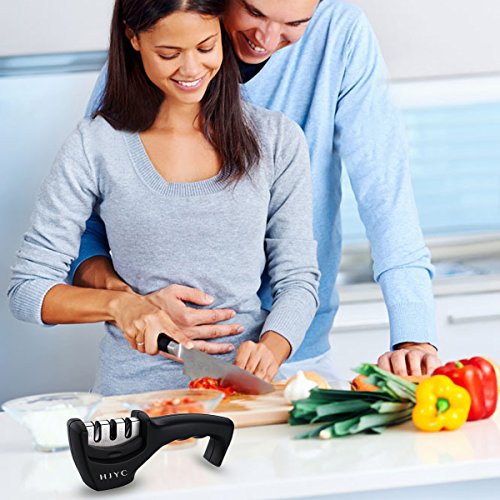 ★3 Step Sharpening System: Three outstanding hard materials, hard to blunt. The 1st step is to use the tungsten steel slot V double side open front, The 2nd step is to finish the fine grinding by the diamond sharpener. Finally, the 3rd step is finished by the aviation ceramic to achieve the sharp effect.