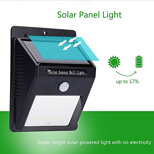 vTopTek Solar Lights Waterproof Solar Powered PIR Motion Sensor Light, 8 Led Solar Powered Rechargeable Security Light for Wall / Porch / Pathway / Garden / Street Light (2 PACK)