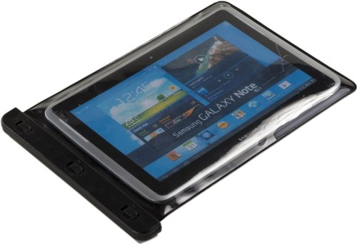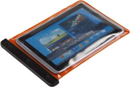 -. Feature : Universal design to fit a range of 10.1" tablets, not exceeding 7.6 x .5 x 10.3 in (WDH) / Clear plastic window maintains screen touch sensitivity / Rotating dial locks for air-tight seal / Keeps dirt, dust, rain and water splashes out. Adjustable/detachable nylon shoulder strap. / All stock shipped from USA. Next day delivery available with Express shipping (excl. remote areas).