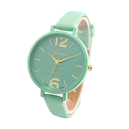 -. Title : Start Women Faux Thin Leather Band Net Color Elegant Wrist Watch -Mint Green