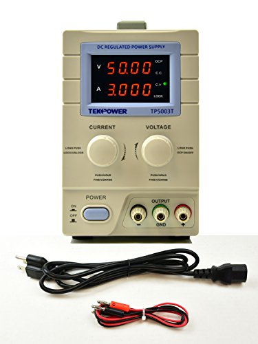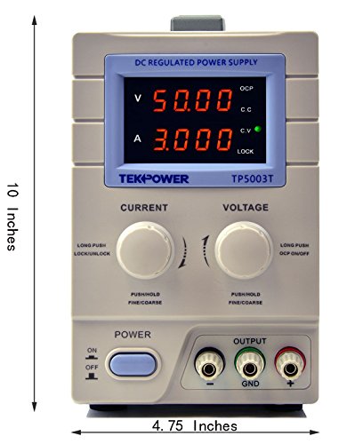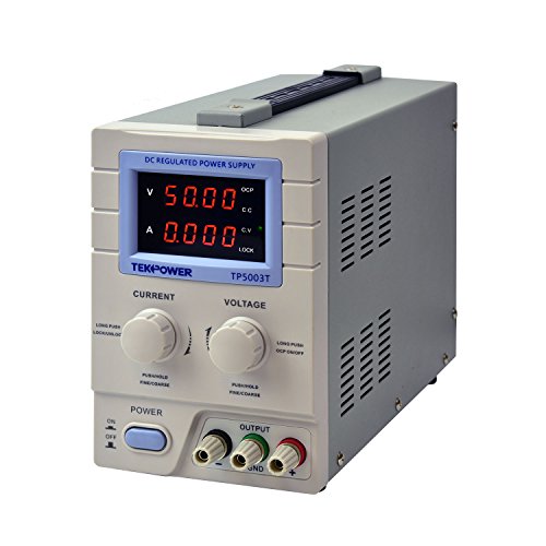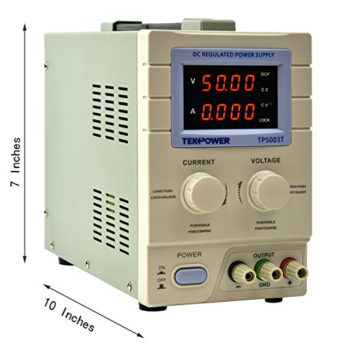 Tekpower TP5003T Variable DC Power Supply, Linear Output for Labs and Science Research, Power Cord and Alligator included