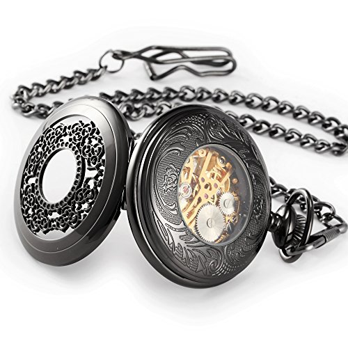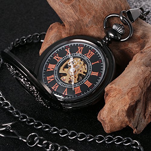 -. Binding : Watch -. Brand : Sinopic -. Color : Black -. Department : Unisex-adult -. EAN : 0735346313070 -. Feature : Perfect hand wound pocket watch as gift for special days like Black Friday, Halloween, Thanksgiving, and Christmas! / Half hunter steampunk chrome plated case with mechanical movement and blue roman numerals and skeleton black dial display for Sinopic brand-new antique victorian pocket watch. / Super harmony with the perfect combination of vintage chrome case treated by anti scraping process and prettily engraved with flowers on the back . / Winder is At 12 O'clock Position and please wind up in a clockwise direction .Every time a wind-up skeleton pocket watch could work for 24 hours . / Comes with durable metal chain(length:14.8 inches) and 1 Year Guarantee And Branded Packaging . -. Label : Sinopic -. Manufacturer : Sinopic -. Model : 30010076 -. MPN : 30010076 -. PackageQuantity : 1 -. PartNumber : 30010076 -. ProductGroup : Watch -. ProductTypeName : WATCH -. Publisher : Sinopic -. Studio : Sinopic -. Title : Sinopic Vintage Pocket Watch for Men with Antique Gold Roman Numerals Skeleton Black Dial with Chain -. UPC : 735346313070