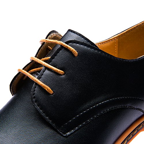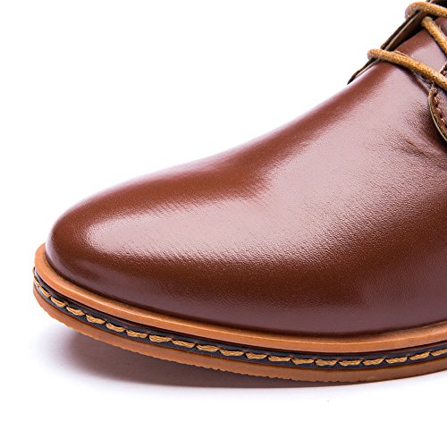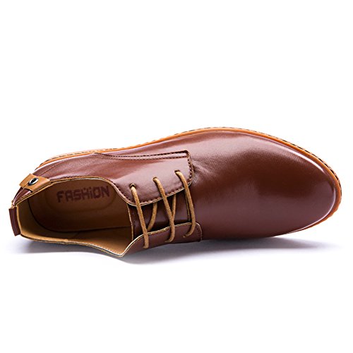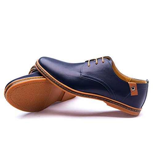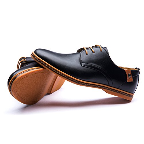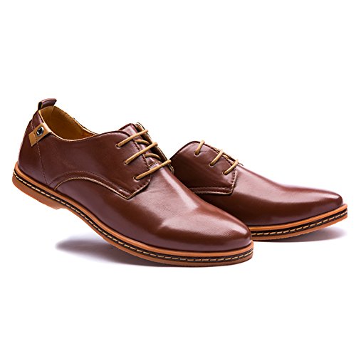 Item:Men's Leisure Lace-up Flat Oxford Dress Shoes Style:Casual Material: PU Leather(Synthetic Leather) Sole Material: Rubber The shoes is a round plain toe oxford featuring a lace up closure, and a slight heel on a rubber sole.