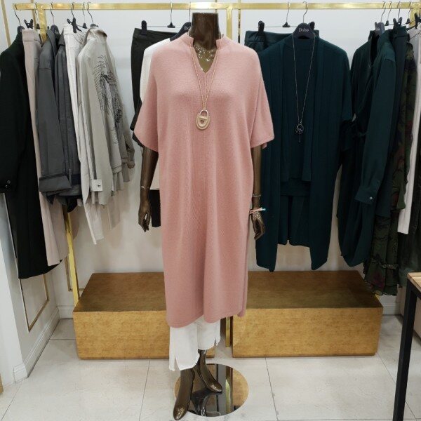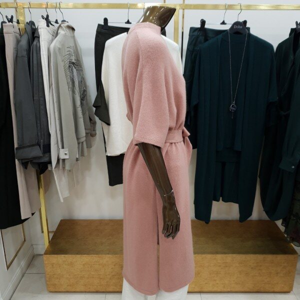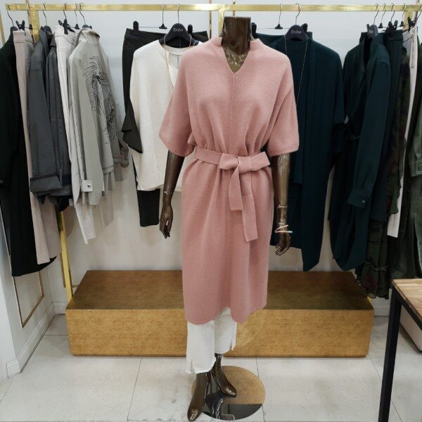 롱한 기장감에 옆의 트임이 포인트인 니트로 허리 끈으로 다양한 분위기가 연출 가능하며 데님이나 다양한 팬츠 아이템으로 코디 가능한 아이템 입니다