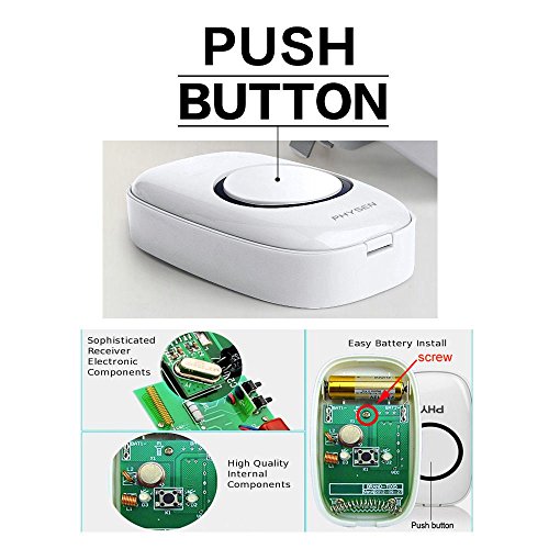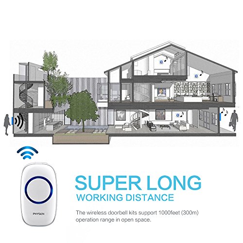 PHYSEN Model CW Wireless Doorbell kit with 2 Buttons and 3 Plugin Receivers,1000 feet Long Range,4 Volume Levels and 52 Melodies Chimes,No Battery Required for Receiver