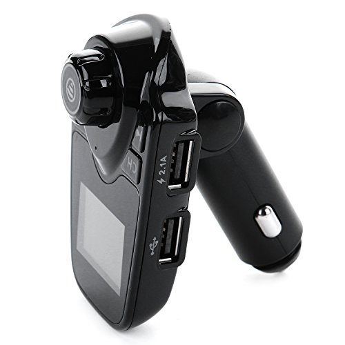 UltraGuards Wireless In-Car Bluetooth FM Transmitter Radio Adapter Car Kit with 1.44 Inch Display and USB Car Charger