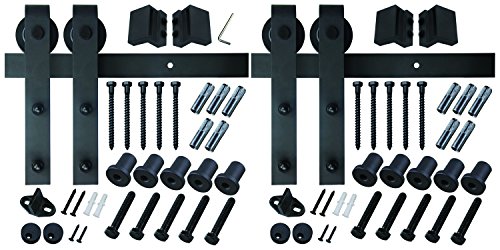 SMARTSTANDARD 13 FT Double Door Sliding Barn Door Hardware (Black) (J Shape Hangers) (2 x 6.6 foot Rail)