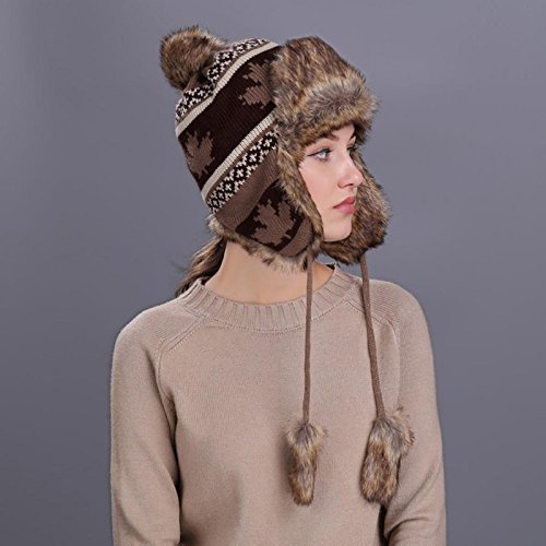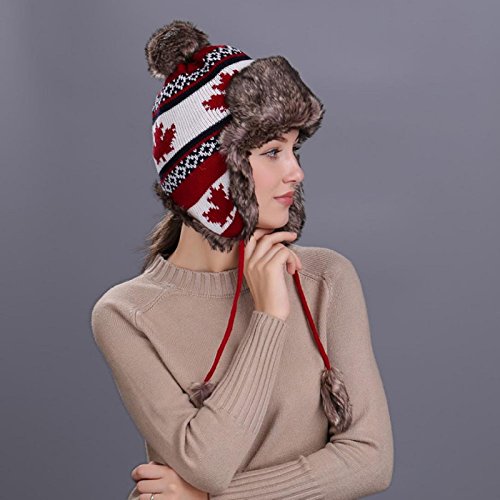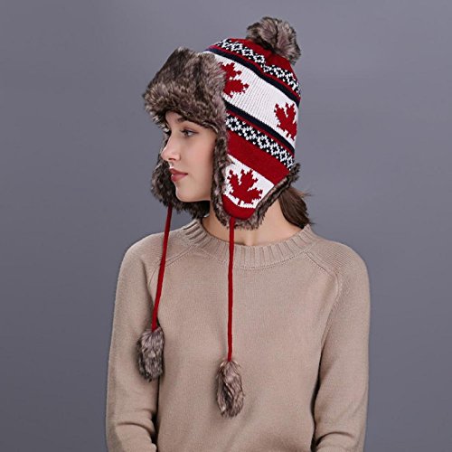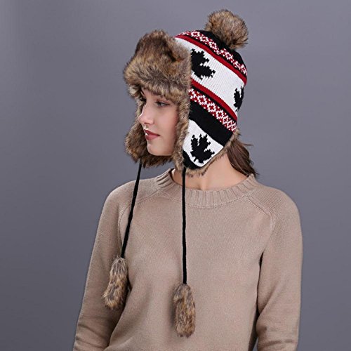 (Owill)/Accessories/Hats/DIRECT FROM USA/Owill Women Girls Ears Protected Winter Hat Maple Leaf Printing Snow Ski Thick Beanie Cap