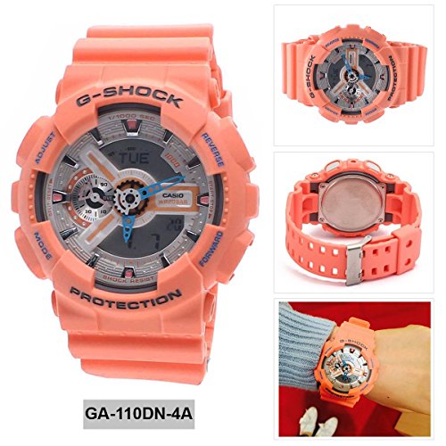 12/24-hour format / Package: Type of box received may differ from image shown, as designs for US, EU, and Asia are different. However, they are still authentic. / Casio GA-110DN-4A Strap: Red Resin Strap
