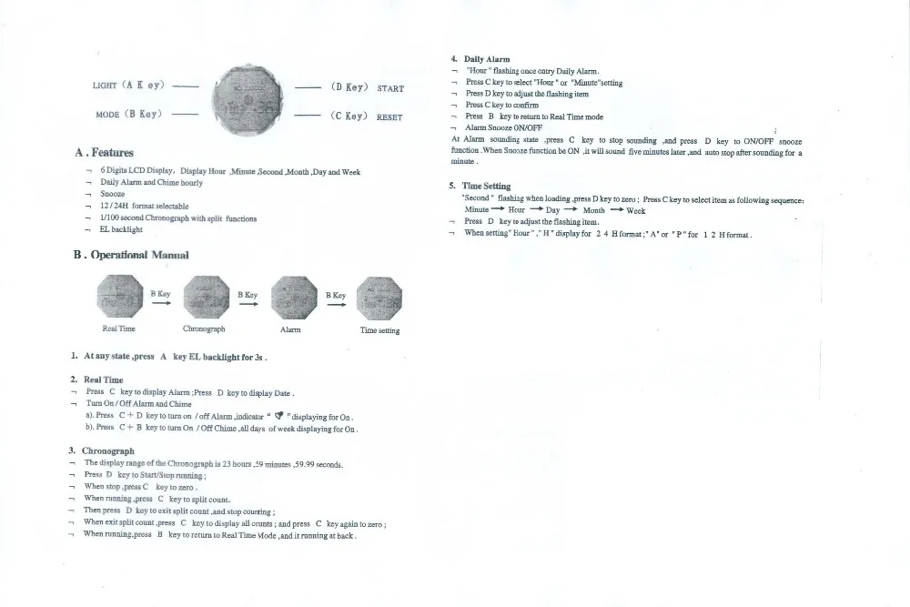 Feature:Water Resistant,LED display,Stop Watch,Auto Date,Complete Calendar