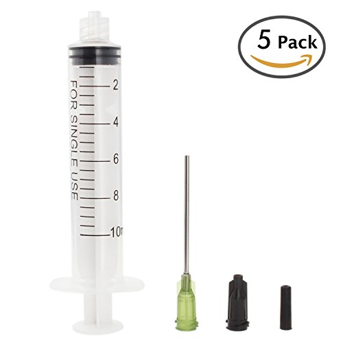 10ml Syringes with 14Ga 1.5'' Blunt Tip Needle and Storage Caps - Great for Glue Applicator, Oil Dispensing (Pack of 5)