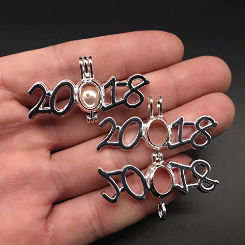 8pcs 2018 Year Symbol Pearl Cage Bright Silver Beads Cage Locket Pendant Jewelry Making--For Oyster Pearls, Essential Oil Diffuser, Fun Gifts (2018)