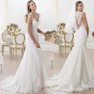 ウエディングドレス Vラインネック マーメイドライン スタイリッシュ 上品 エレガント パーティー S M L XL XXL XXXL