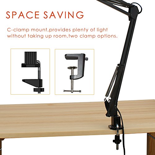- ✔ DESKTOP SPACE SAVING: lamp with clamp,only need a little space on desk surface that in 2.5" thickness,but get a large brightness area by 31" long arm