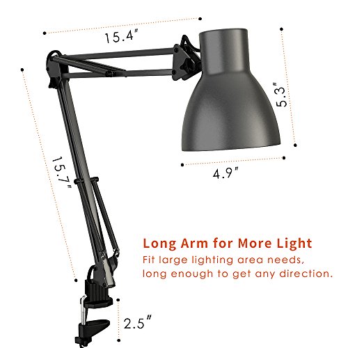 ToJane Swing Arm Desk Lamp,Architect Desk Clamp Mounted Light, Adjustable Arm Drawing/Office/Workbench Table Lamp,Grey Metal Finish