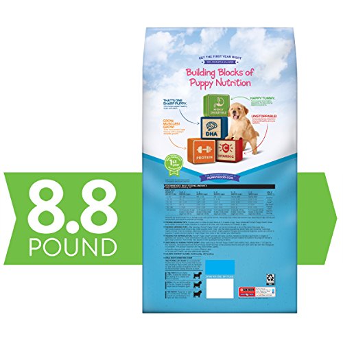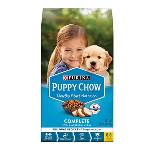 Provide the nutrition your puppy needs to get a great start in life with Purina Puppy Chow Complete With Real Chicken dry puppy food. Every serving of this puppy food contains 100% of the essential nutrients puppies require to grow big and strong, and the delicious taste gives him a reason to clean his bowl at every feeding. Tend to your growing pup's nutritional needs through the vital early stages of his development with this dry puppy food, and take comfort in knowing he's getting a highly-digestible formula he will look forward to eating every day. Packed with 27% protein from high-quality sources, including real chicken, this recipe supports his growing muscles, so he can keep up with his adventurous canine pursuits. Our employees don't just make this Purina Puppy Chow recipe; they trust it enough to feed it to their own puppies every day, too. Place an order for Purina Puppy Chow dry puppy food to show your best buddy how much you care.