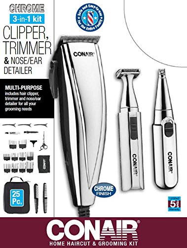 -. Title : Conair 25-Piece 3-in-1 Chrome Clipper, Trimmer & Nose/Ear Detailer