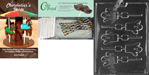 Cybrtrayd "Small Ghost Lolly" Chocolate Mold with Chocolatier's Bundle, Includes 25 Lollipop Sticks and 25 Cello Bags