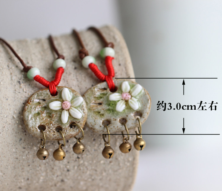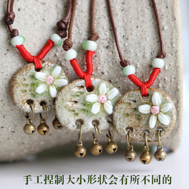 [Flower] stone hand-kneaded clay ceramic necklace pendant Ethnic jewelry