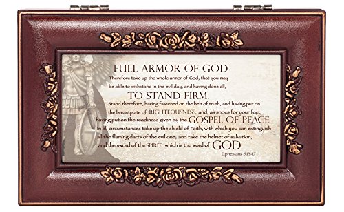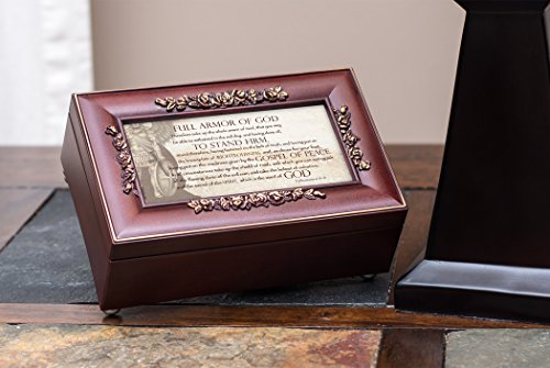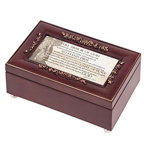 Full Armor of God Ephesians 6:13-17 Rose Wood Finish Jewelry Music Box Plays Canon in D