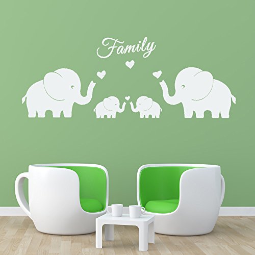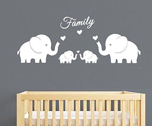 4 Cute Elephants Family Wall Decals Parents and Twins Elephant Wall Decal for Baby Nursery Love Heart Family Words Vinyl Wall Art Elephant Home Decor(Large size) (White)