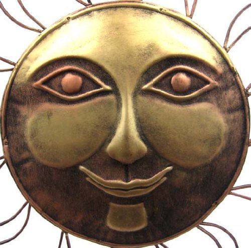 Metallic Gold Smiling Sun Metal Wall Hanging 30 Inch