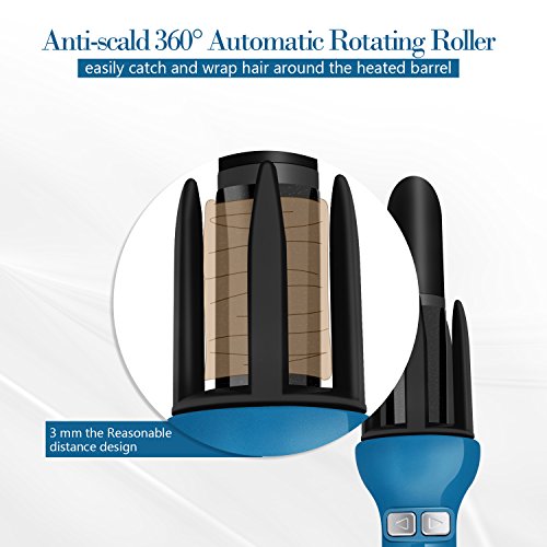 - You’ll Never Get Burned - 360°rotating roller automatically grasp and wrap your hair around the barrel, your hand never touch the heating barrel to avoid burning. 40 min auto shutoff function give you extra piece of mind