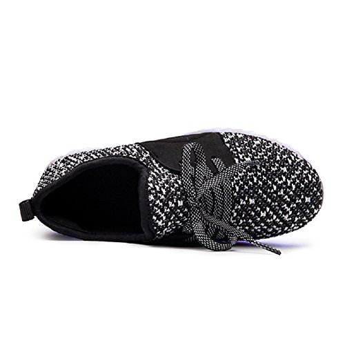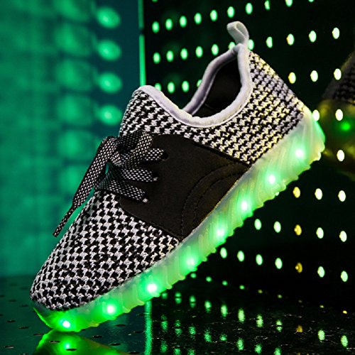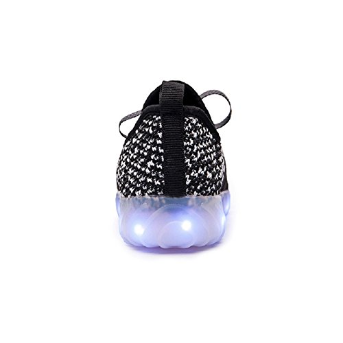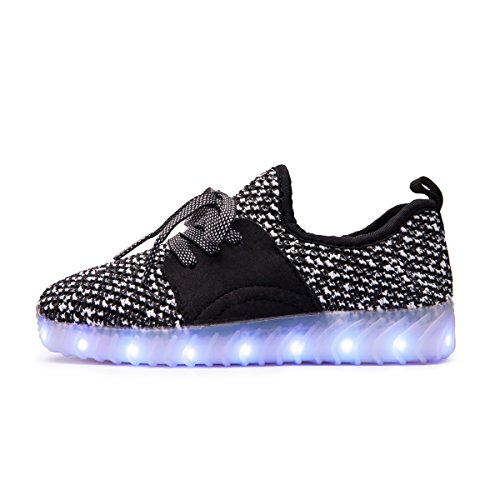 -. Feature : It is suitable for children, boys and girls, and those who like to dance. / It is suitable for the night run, singing in the bar when the dance in the evening when you become the focus of everyone. / 7 Colorful LED non-slip rubber sole, Lightweight and breathable flying weaving fabric shoes upper. / Shoes color:Black,Blue,Pink,Red,White / Switch Instruction: Hidden switch button beside the charging port. Press it to switch on. With each press,it changes to another light mode. Press the switch for 8 times to all colors lights flashing , keep pressing for 3 seconds to turn off the power.