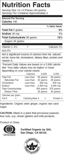 Certified Organic Crystallized Ginger 6 oz (170 grams) Pkg