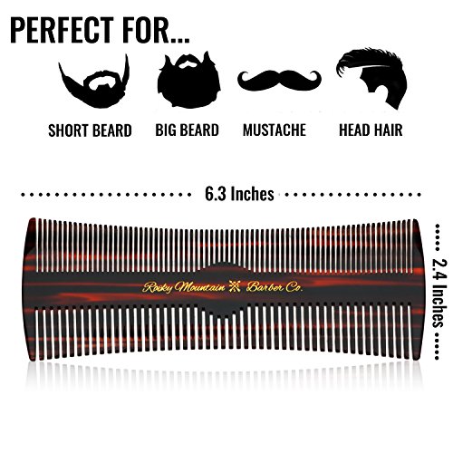 Hair Comb - Fine and Medium Tooth Comb for Head Hair, Beard, Mustache - Warp Resistant, No Snag Design with Contour Sides Crafted...