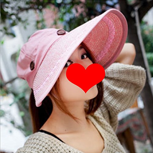 (dufu-beauty-store)/Accessories/Hair Accessories/DIRECT FROM USA/Wide Large Brim Floppy Summer Beach Straw Hat Button Cap Pink