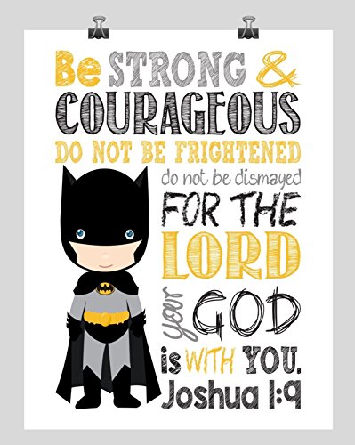 -. Title : Batman Christian Superhero Nursery Decor Wall Art Print - Be Strong & Courageous Joshua 1:9 Bible Verse - Multiple Sizes