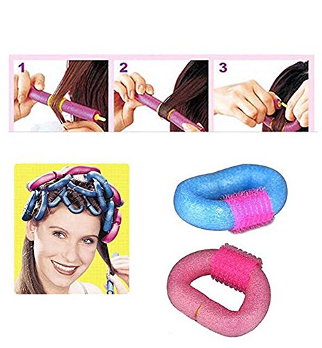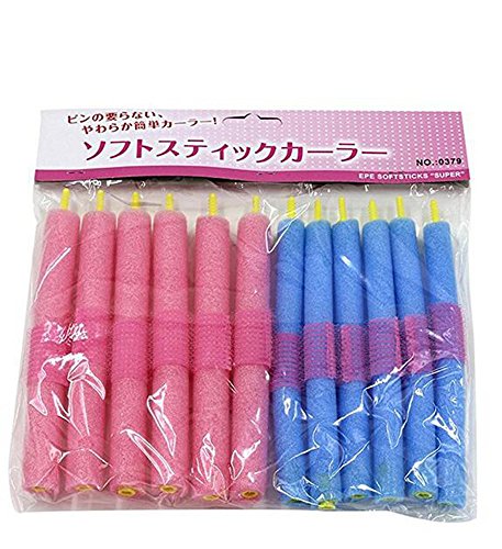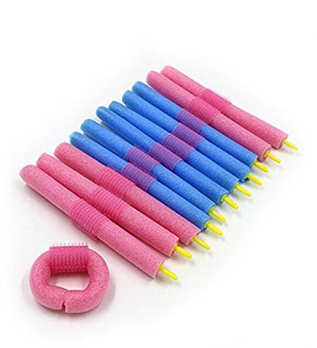 YOYOSTORE 12pc Blue + Pink Soft Sponge Foam Anion Bendy Hair Rollers Curlers Salon DIY